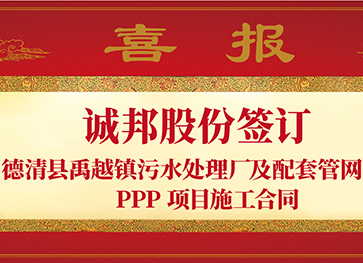 【喜报】诚邦股份签订德清县禹越镇污水处理厂及配套管网工程 PPP 项目施工合同