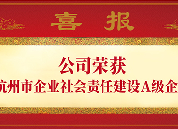 【新闻动态】公司荣获“杭州市企业社会责任建设A级企业”