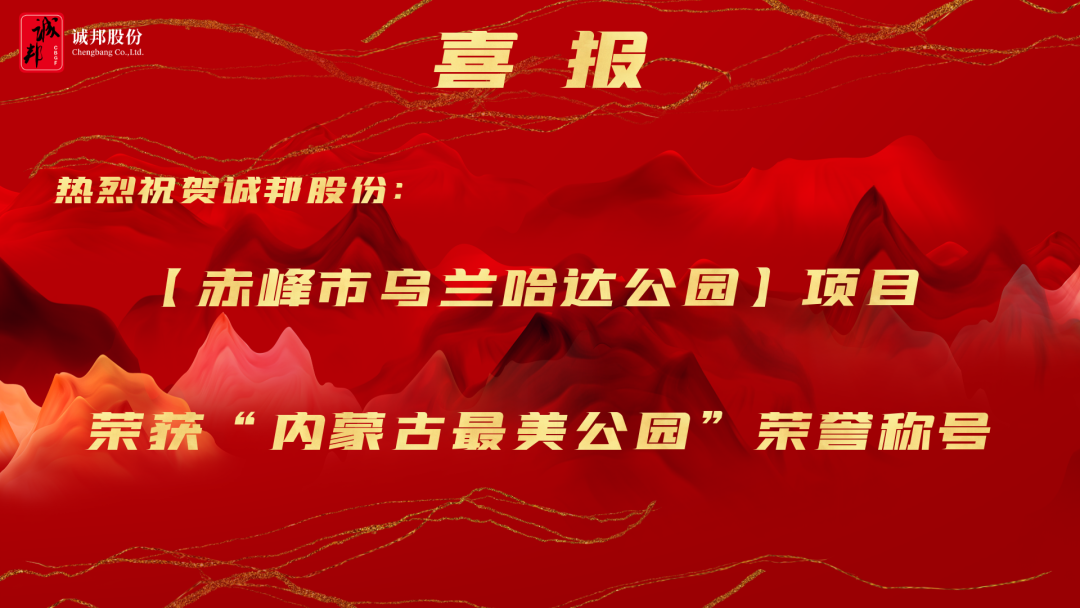 喜 报 根据内蒙古自治区住房和城乡建设厅发布的文件通知:诚邦股份【赤峰市乌兰哈达公园】项目 荣获“内蒙古最美公园”荣誉称号 项目展示赤峰市乌兰哈达公园项目位于 内蒙古自治区赤…