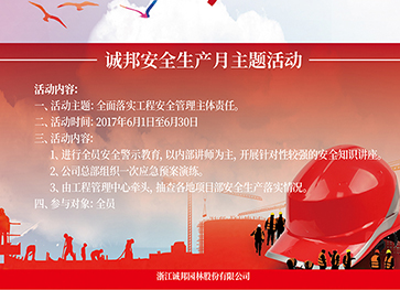 公司各部门、各事业部,诚邦设计院: 为深入贯彻国务院安委会办公室2017年5月发布的《关于开展2017年全国“安全生产月”和“安全生产万里行”活动的通…