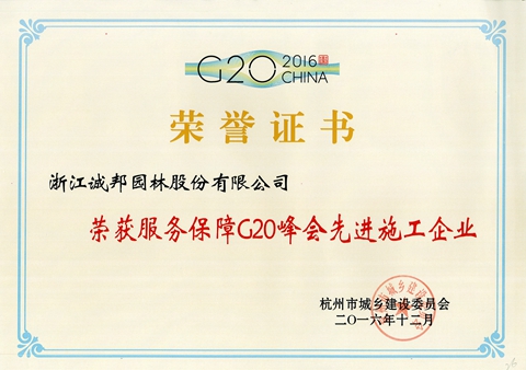 举世瞩目的G20杭州峰会取得了圆满成功,公司作为服务保障峰会先进施工企业典型之一,受到杭州市城乡建设委员会的表彰,荣获“服务保障G20峰会先进施工企业”称号。