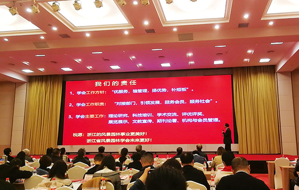 11月28日至29日,浙江省第九届“园林人居”论坛暨2019年度“优秀园林工程”颁奖大会在杭州之江饭店隆重召开,中国风景园林学会理事长陈重、浙江省建设厅副厅长张奕、浙江省科协副主席姜长才等领导出席会议。