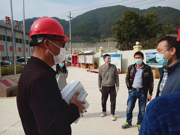 2月26日,为进一步保障建筑业复工复产,松阳县建设局建管科长徐跃波与松阳县质安服务中心主任方甜一行来到诚邦股份松阳县火车站站前大道站前广场及其配套工程PPP项目部检查防疫工作,慰问一线施工人员并送上防护用品。