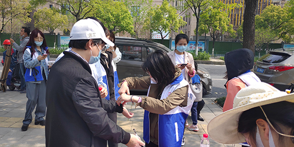 签到处,参加活动的市民都有做好个人防护,佩戴口罩,主动出示健康码,配合工作人员测量体温。
