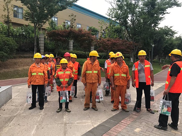 6月29日上午,工会主席闫媛媛带队,第一事业部总经理周欣欣、工程部副经理江世杰、工程管理中心屠峰等同事一同前往金华经济技术开发区湖海塘公园养护管理服务项目、丽水万洋低碳智造小镇基础设施ppp项目、丽水东扩二期道路(成大街、秀山路)养护、镇区基础设施提升和改造工程(人民街工程)、庆元县城区地下综合管网工程、松阳县火车站站前大道站前广场及其配套工程ppp项目等6个项目现场,向顶着酷暑作业的一线员工表示亲切慰问,并亲手送上防暑慰问品。