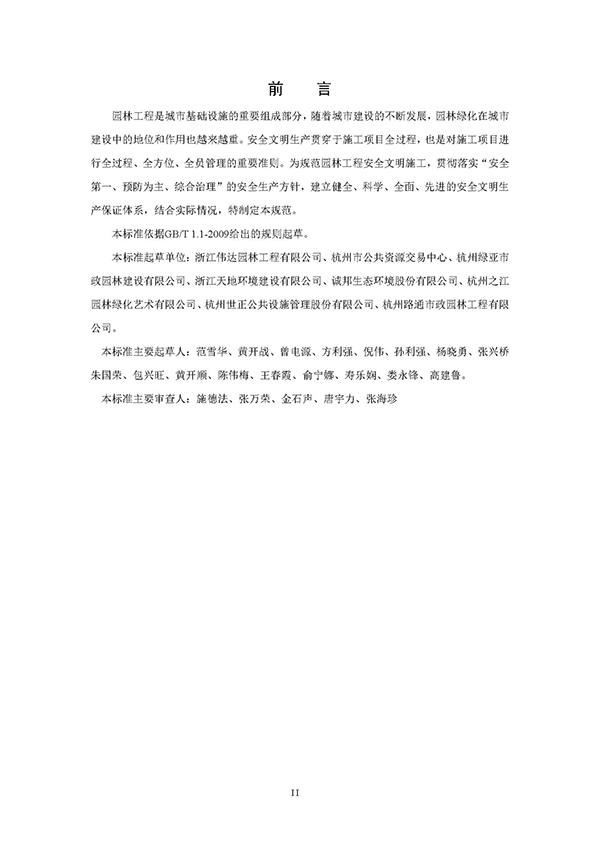 为规范园林工程安全文明施工,贯彻落实“安全第一、预防为主、综合治理”的安全生产方针,建立健全、科学、全面、先进的安全文明生产保证体系,由浙江省产品与工程标准化协会牵头,浙江伟达园林工程有限公司、杭州市公共资源交易中心、杭州绿亚市政园林建设有限公司、浙江天地环境建设有限公司、诚邦生态环境股份有限公司、杭州之江园林绿化艺术有限公司、杭州世正公共设施管理股份有限公司、杭州路通市政园林工程有限公司等单位结合实际情况,共同起草制定《园林工程安全文明施工管理规范》。