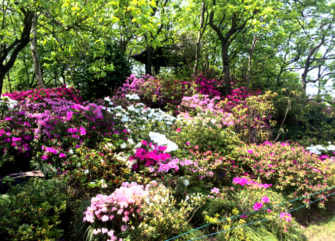 上午参观上海植物园(国际)花展,首先参观的是杜鹃园,包含了10种原种杜鹃:迎红、鹿角、马银华、兴安、猴头、大字、山、羊踯躅、红枫、云锦。18个品种杜鹃:御新锦(白)、御新锦(粉)、喜鹊登枝、红百合、粉面铁红、红双喜、春之舞、白佳人、笔紫、丹顶、人面桃花、村姑、劳动勋章、花丹麦、红百合、雪晴、白丹麦、五彩夏娟。