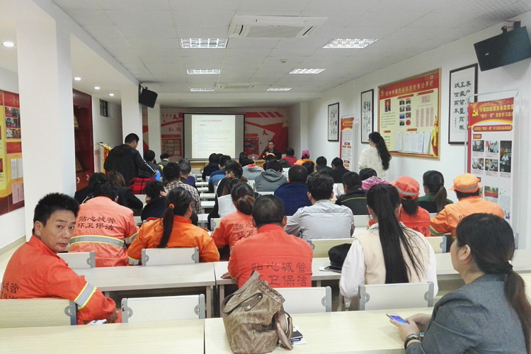 为进一步提高环卫工人素质和形象,加强环卫行业宣传工作,提高宣传意识,弘扬环卫行业正能量,规范媒体采访制度,江干区城市环境协会于2017年10月19日(星期四)下午在江干区运新花苑城管驿站内开展环卫行业宣传工作培训。