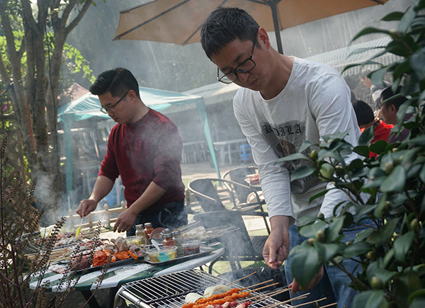 在烧烤过程中女同事互相配合着洗菜、串肉,男同事则忙着生火、加炭,场面好不热闹。大家都拿出了“十八般武艺”,充分展示出自己的动手能力和美食鉴赏能力,欢声笑语随着缕缕炊烟萦绕在空中,大家吃着亲手烤出的各种美味,聊着自己在工作和生活中遇到的趣事,其乐融融!