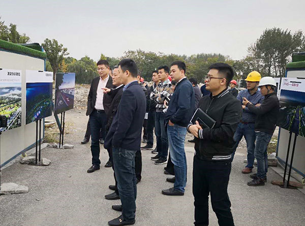 东投集团相关领导以图文结合的方式介绍了项目的整体情况以及施工完成后的整体效果。陈书记对于完工后的景观效果充满期待,希望下沙沿江绿道能成为一道亮丽的风景线。视察中陈书记充分肯定了我司的工作效率,同时也提出了一些改进意见。公司项目副经理向陈书记报告了该项目进程中的重点以及难点,同时传达了该工程争创园林金奖的目标。