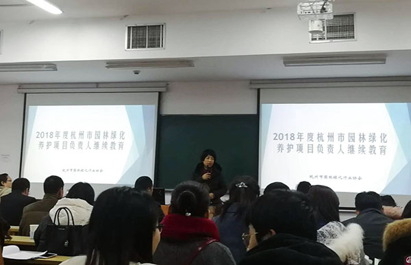 为适应不断变化的绿化养护市场需求,为提高企业养护项目负责人专业技术水平,12月26日杭州市园林绿化行业协会在杭州昆仑大厦举办2018年度杭州市园林绿化养护项目负责人继续教育培训,公司作为会员单位特派养护项目负责人参加本次培训。