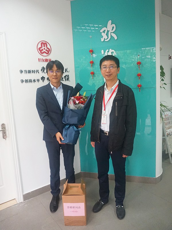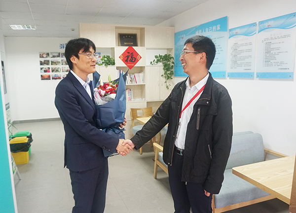公司生产中心总经理肖军代表协会向林总送上鲜花,并致以节日的问候。在林总的带领下我们参观了巾帼西丽驿站,并学习了驿站管理运营方面的经验。